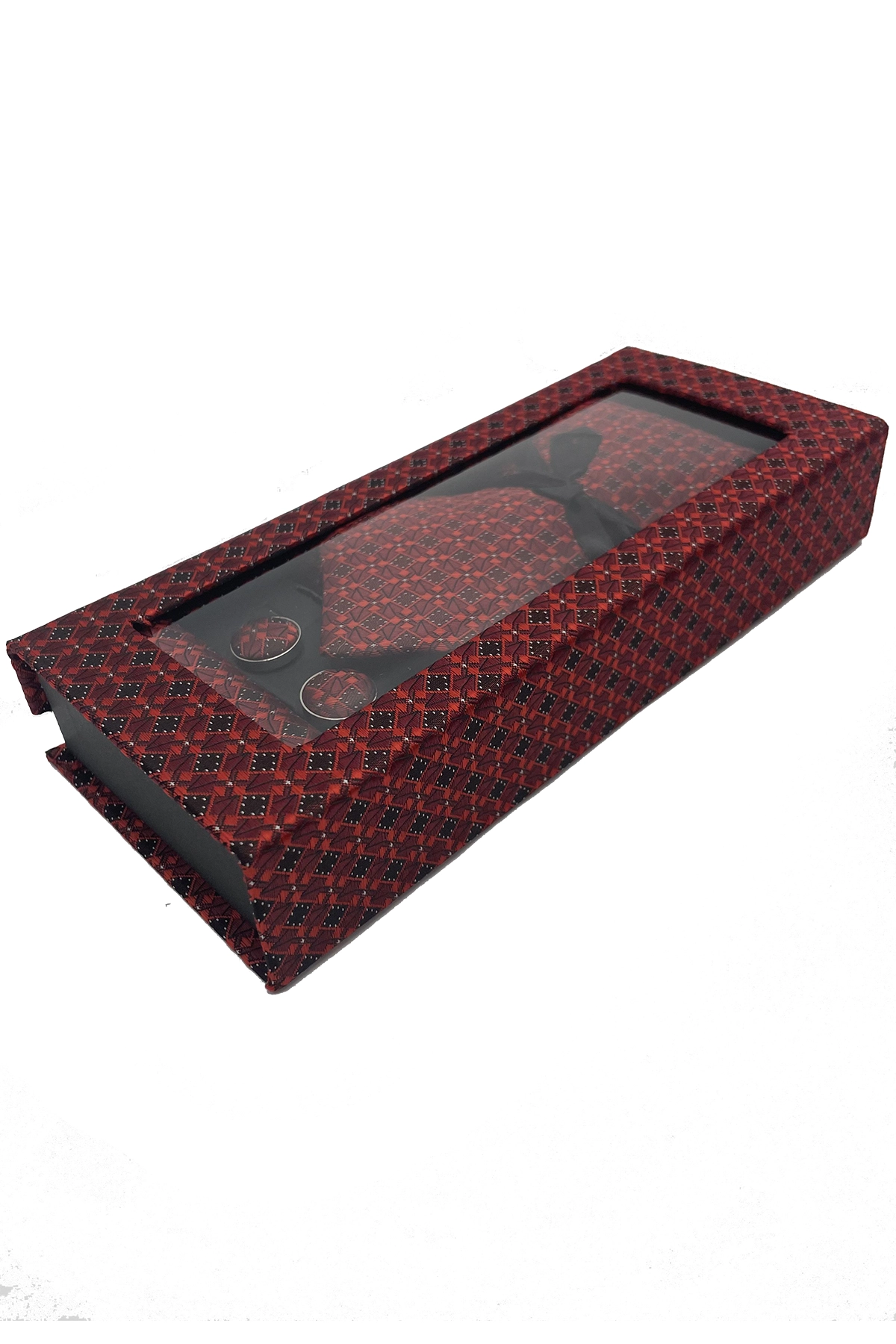 Set de regalo 3 piezas para hombre: corbata, pañuelo y gemelos a juego en elegante diseño rojo. Perfecto para eventos, oficina o regalos especiales. Añade estilo y sofisticación a cualquier look formal.