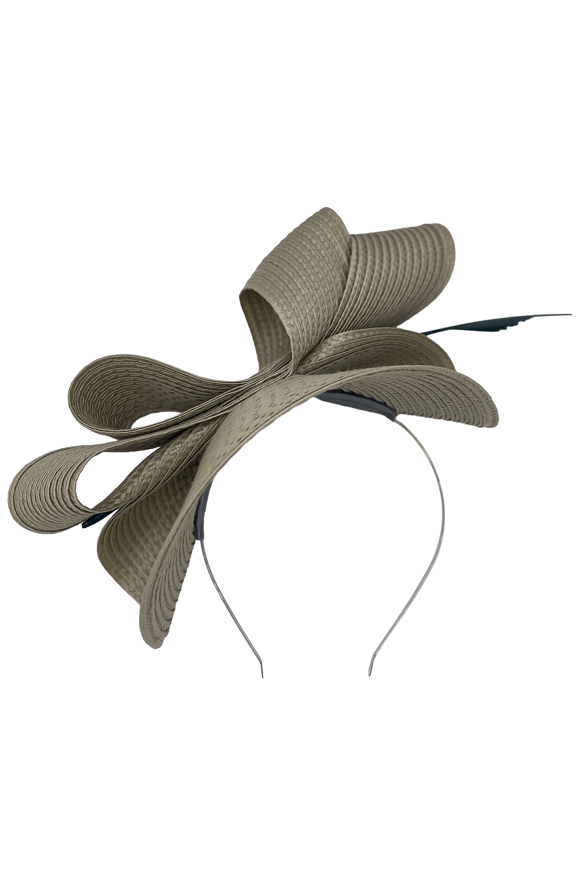 Su diseño asimétrico, con formas que evocan pétalos o cintas ondulantes, aporta volumen sin resultar excesivo. El resultado es una pieza moderna, equilibrada y atemporal, ideal para quienes buscan un tocado diferente que refleje personalidad y gusto por los detalles.